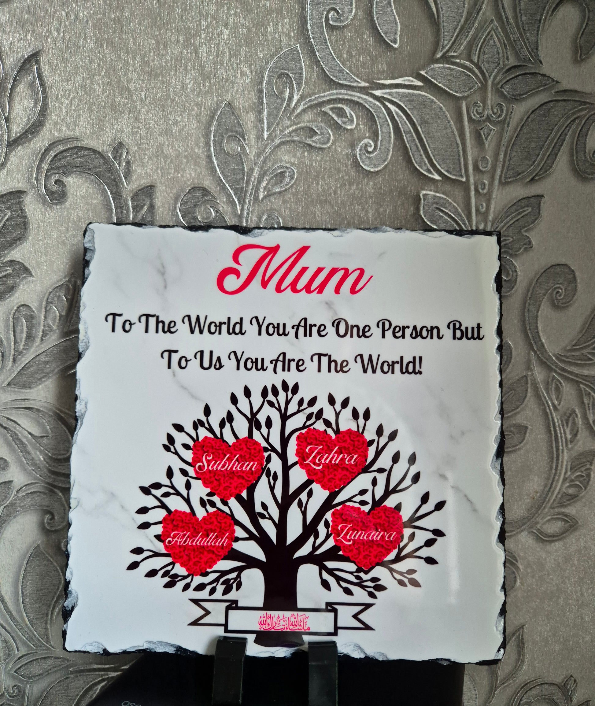 Our Beautiful Mothers Slate gift is a unique gift for Mothers. This is a special gift for your dearest mother. What makes it even more special is having her children's name on the frame.