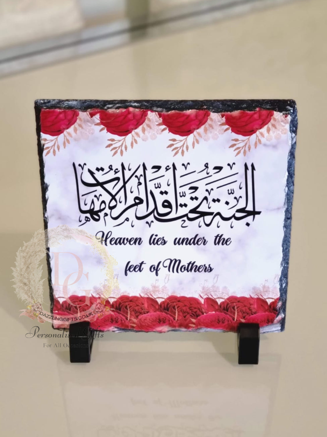 Rock Slate Details: The Arabic Calligraphy is a Hadith meaning " Heaven lies beneath the feet of Mothers"