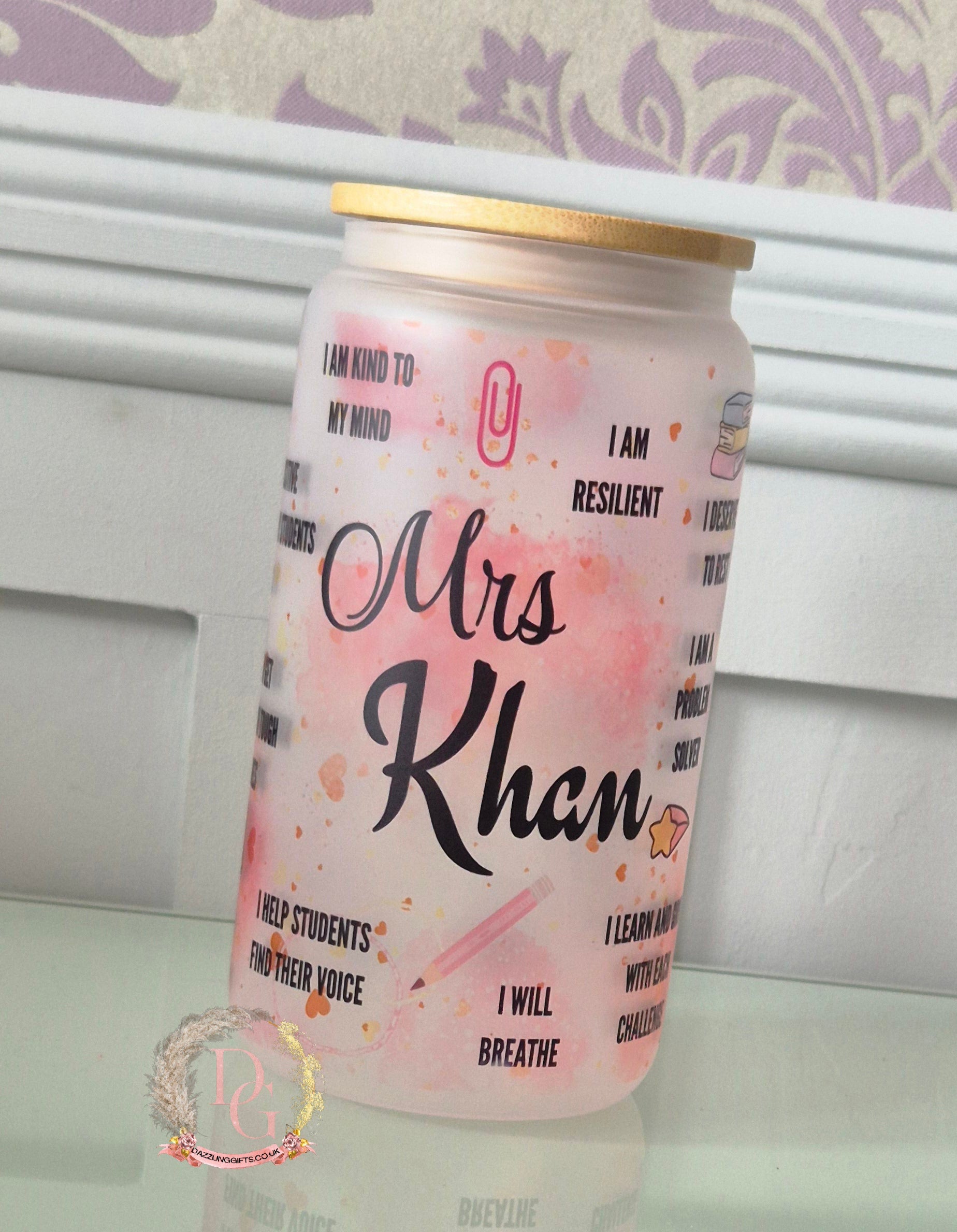 This personalised Libbey Glass Drinking Can is perfect for yourself or your favourite Teacher/Support Staff.Made with high quality glass for durability and features a unique design that showcases your team's logo. Perfect for everyday use.